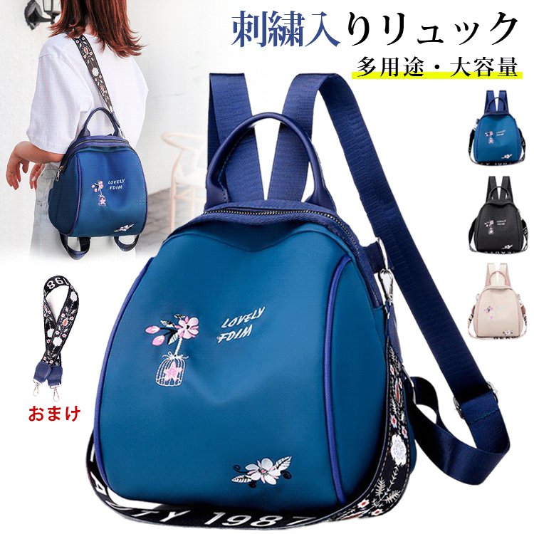 【レディース刺繍入りリュックサック】大容量、刺繍入り、軽い、耐磨耗、撥水